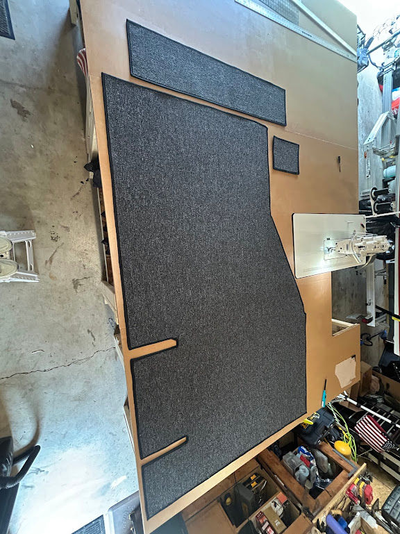 These photos highlight the attention to detail and craftsmanship that go into every custom marine carpet installation we complete. Each carpet section is precisely patterned to follow the unique contours and deck layout of the client’s boat, ensuring a seamless, tailored fit throughout. The edges are finished with high-quality Sunbrella® binding for a clean, professional look that resists fraying and fading over time. Every stitch is sewn with Tenara® PTFE thread—one of the strongest, most weather-resistant threads available—providing long-lasting durability against sun, moisture, and heavy foot traffic. The images showcase the level of quality and precision you can expect in every custom carpet project.